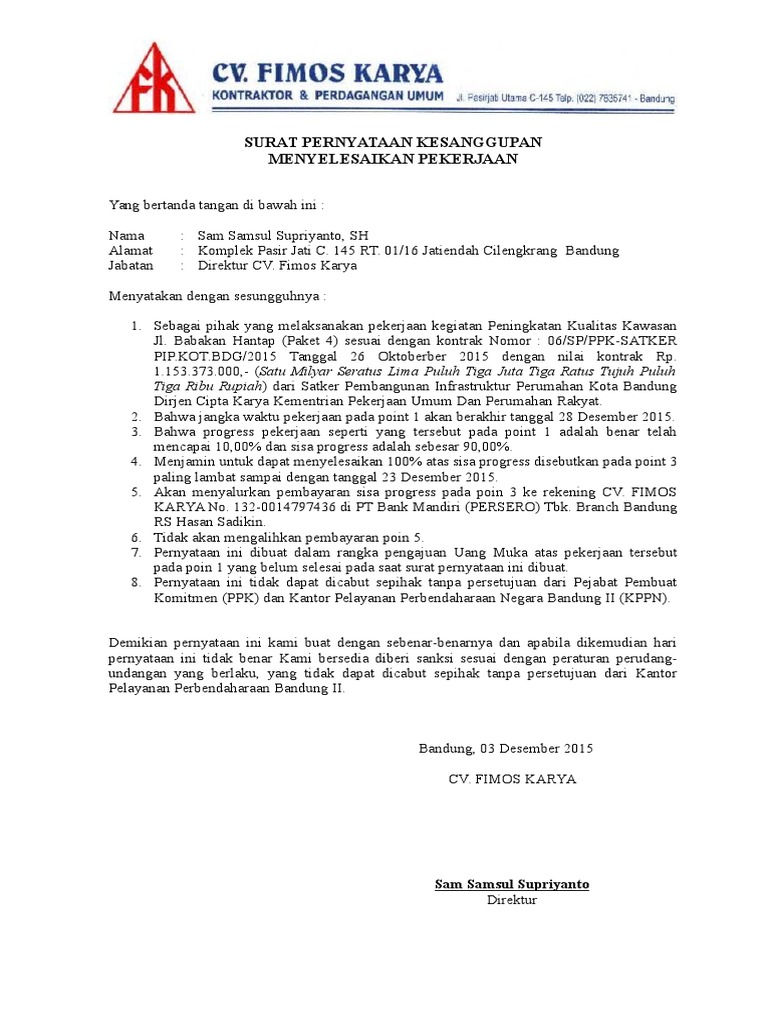 Surat ini dibuat ketika seseorang mempunyai. Secara umum ada tiga hal pokok yang harus ada dalam surat pernyataan kesanggupan. 21 rt 02 rw 03, dengan. Yang mana hal tersebut harus di taati oleh. Tidak ada permintaan penambahan ongkos kerja, 5.