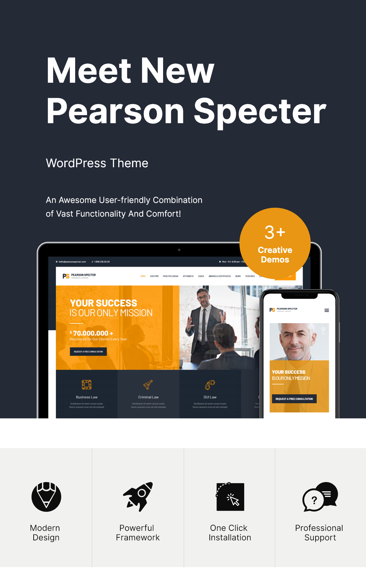 Lawyer v1.6 law firm wordpress theme is built on top of bootstrap framework, so developers can be happy and already familiar with most of the code structure.
